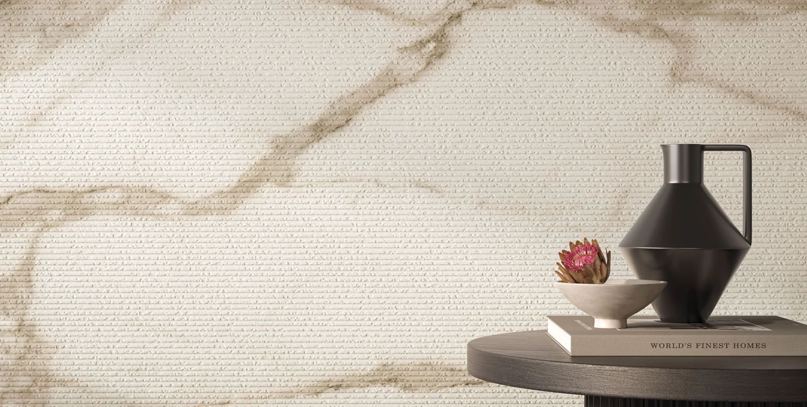 Atelier by Landmark introduces a new dimension to Veneer World with its sophisticated three-dimensional surface design. Thin lines of varying thicknesses, shapes and dimensions create a harmonious interplay of textures, perfect for elevating modern indoor and outdoor settings with a touch of creative elegance.