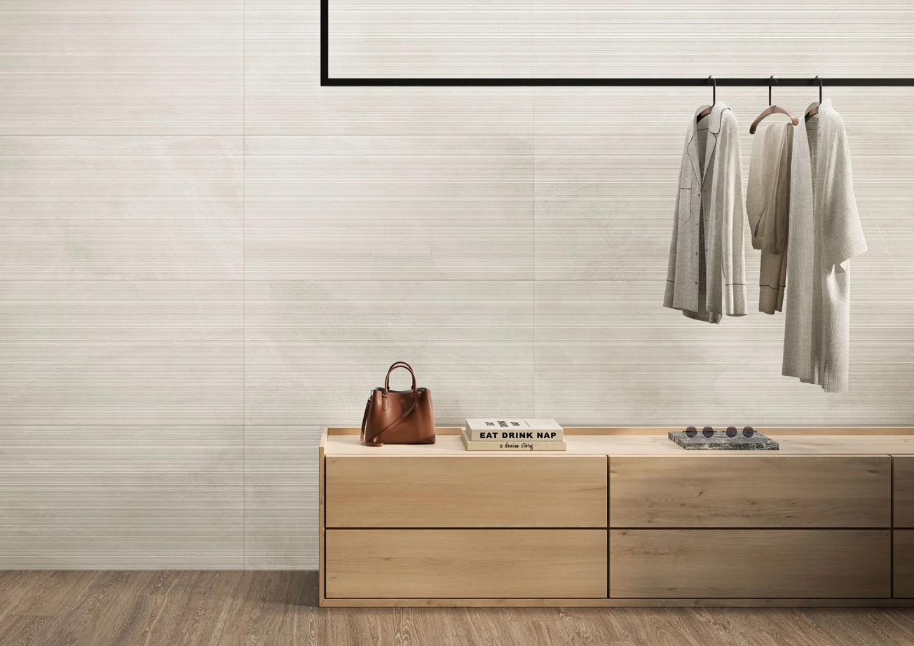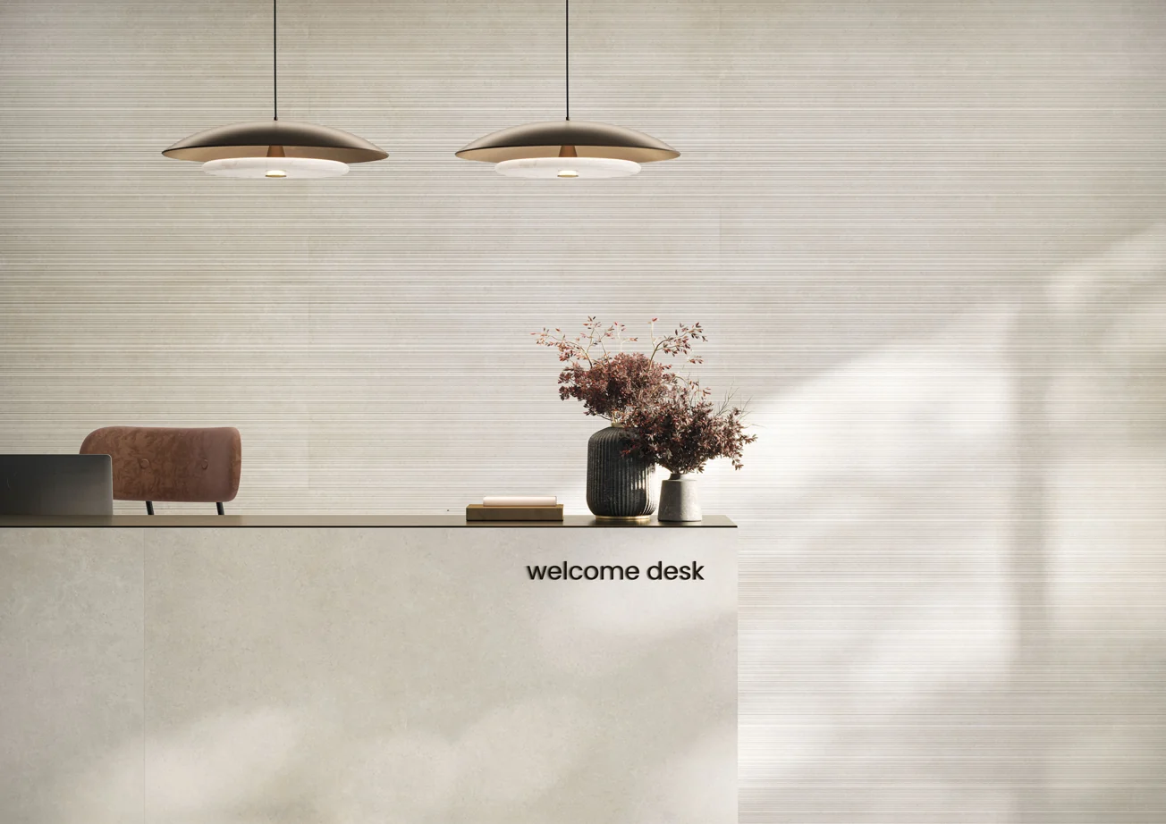 Atelier by Landmark introduces a new dimension to Veneer World with its sophisticated three-dimensional surface design. Thin lines of varying thicknesses, shapes and dimensions create a harmonious interplay of textures, perfect for elevating modern indoor and outdoor settings with a touch of creative elegance.